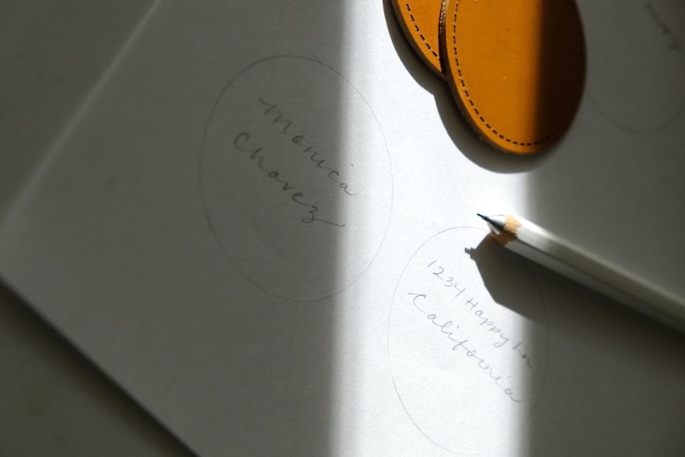 Odrysuj szablon skórzanej metki na papierze i zdecyduj co chcesz tam umieścić i jak będzie wyglądać Twój projekt.