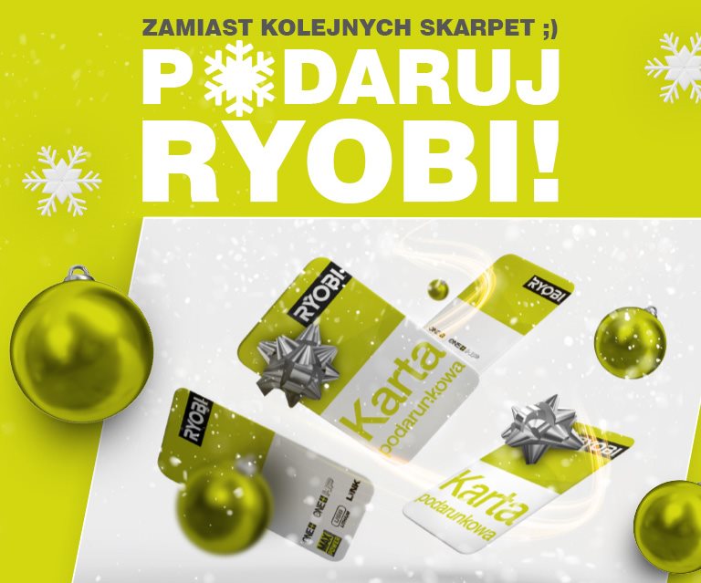 Czy istnieje lepszy prezent dla entuzjastów majsterkowania, niż karta podarunkowa do wykorzystania na szeroką gamę elektronarzędzi, narzędzi ręcznych, przechowywania i akcesoriów do domu i ogrodu marki Ryobi?