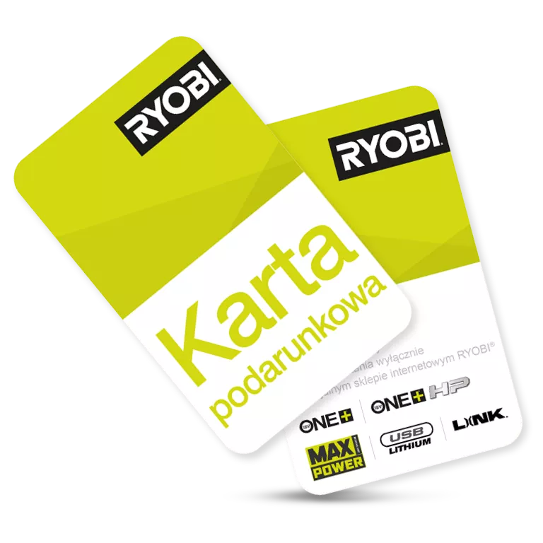 Spraw sobie lub bliskiej osobie prezent w postaci karty podarunkowej Ryobi. Oferujemy szereg kart podarunkowych w formie elektronicznej, które pasują do każdego budżetu, idealne dla Twoich znajomych i rodziny, aby cieszyć się nimi przez okres do 12 miesięcy.