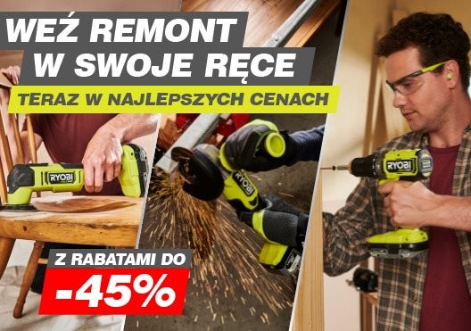 Zrealizuj swoje najlepsze projekty w domu i ogrodzie bez nadwyrężania budżetu! Odkryj świat promocji i ofert specjalnych RYOBI®, gdzie rewolucyjny system akumulatorowy ONE+™ łączy się z genialnymi okazjami. Czekają tu na Ciebie oferty, jakich nie znajdziesz nigdzie indziej – wyjątkowe prezenty za 1 zł, rabaty na elektronarzędzia sięgające 50% i pewność 3-letniej gwarancji. Zobacz, jak jeden akumulator otwiera drzwi do ponad 200 narzędzi i niekończących się możliwości.